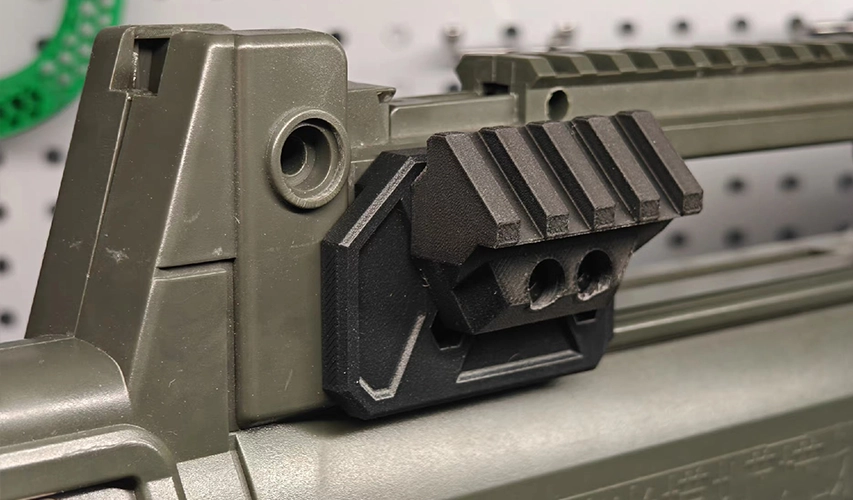 engineered with ambidextrous reversible rail compatibility, constructed from MAT3D MAKER PETG-CF for superior impact resistance, effortless layer adhesion, and a refined oil-infused matte finish. Features ASTM-certified thermal stability (70°C HDT) and combat-grade abrasion resistance for mission-critical durability.